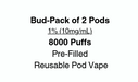 Bud 8000 Puffs Replacement Pod Vape (2 Pack) | 1% (10mg)